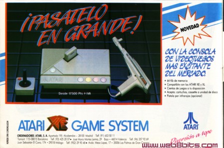 Consola Atari XE Publicado en la revista MicroHobby nº 182 Fecha: Diciembre 1988 Comentarios: Anuncio de la consola Atari XE, aparecido en la revista Microhobby en el mes de Diciembre de 1988. Esta consola era un ordenator Atari 65XE remodelado y convertido en consola de videojuegos, quitándole el teclado y la conexión para periféricos y la de cassette y dejando las conexions de cartuchos y de joysticks. El anuncio ocupaba media página de la revista. Esta consola, al igual que el resto de consolas de 8 bits derivadas de ordenadores fueron un fracaso, tanto esta de Atari, como la de Commodore o la de Amstrad, debido al éxito de otros sistemas como la Nintendo NES o la Sega Master System. |