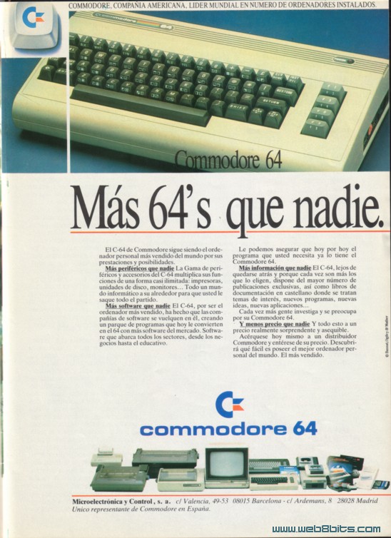 Ordenador Commodore 64 Publicado na revista Commodore Magazine Nº 26 Data: Abril 1986 Comentarios: Derradeiro anuncio de Commodore da sua máquina Commodore 64, aos poucos meses ista foi sustituida polo Commodore 64C. O anuncio fai fincapé na cantidad de Software e Hardware xa desenrolado para ista veterana máquina. |